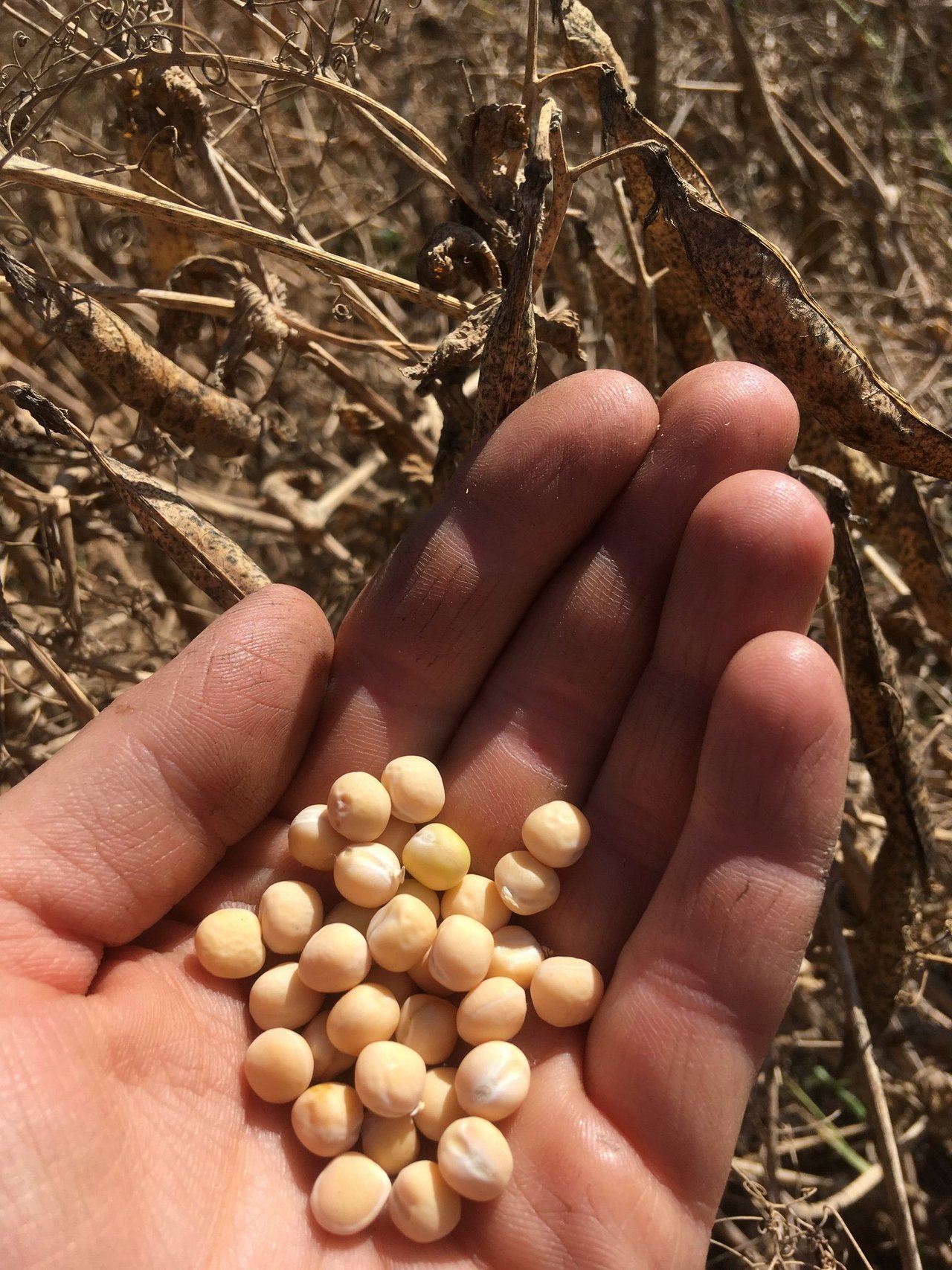 An sich sind Eiweisserbsen eine bekannte und – z. B. im Vergleich zu Kichererbsen – nicht allzu schwierige Kultur. Die Freiburgerin misst aber dem Blindstriegeln eine grosse Bedeutung zu: «Ich kontrolliere das Feld jeden Tag, um den richtigen Zeitpunkt zu erwischen». Die Saat mit einer Getreidesämaschine und das Dreschen übernahm der Lohnunternehmer ihres Vertrauens, gewalzt, gestriegelt und von Hand zweimal Unkraut gerupft hat die Landwirtin selbst. Wie gut sich der Anbau abzüglich der Kosten für den Lohnunternehmer rentiert, wird sich mit dem Betriebsabschluss zeigen. «Aber ich habe sicher einen besseren Preis für die Erbsen, als wenn ich sie wie die Ackerbohnen als Futter verkaufen würde», meint Käthi Bäriswyl.