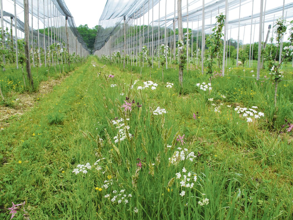 Ein grüner Teppich mit weissen, rosa und gelben Farbtupfern zieht sich über die Niederstammobstanlage von Stefan Müller und Jenny Dornig in Steinebrunn. Ein schöner Anblick aus verschiedenen Wildblumen und Gräsern, die nicht nur den Betrachter jährlich entzücken, sondern auch seine tierischen Bewohner. "Seitdem wir Blühstreifen anlegen, ist die Artenvielfalt sehr viel grösser", sagt der Landwirt aus Steinebrunn im…