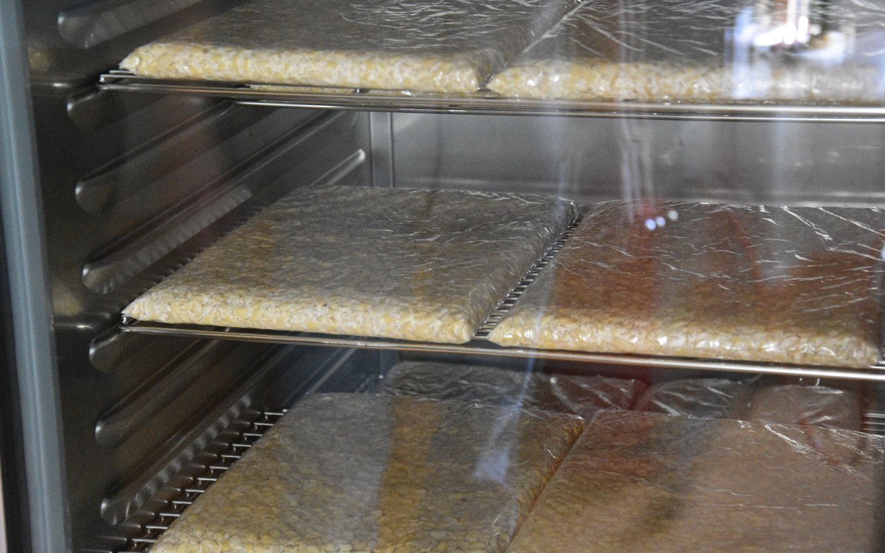 Im kleinen Labor von Tempeh Bagus prüft Christoph Mullis die Temperatur im Kühlschrank. Der Polymechaniker und studierte Biologe hat das Gerät so umprogrammiert, so dass es sowohl kühlen, als auch heizen kann. «Die Fermentation durchläuft drei Phasen», erklärt er, «zuerst heizen wir auf etwa 30 Grad, damit der Pilz wachsen kann». Sobald die Sporen keimen und der Pilz zu arbeiten beginnt, produziert er selbst Wärme und muss gekühlt werden. Auch das fertige Nature-Tempeh lebt: es ist ohne Pasteurisierung nur begrenzt haltbar und entwickelt seinen Geschmack über die Dauer der Lagerung weiter. «Je älter, desto käsiger», beschreibt Stefanie Luttringer. Das Aroma gehe von nussig über zu Camembert-artig. Mariniert und eingelegt in einem Glas wurde laut der Baselbieterin das Produkt schon als äusserst nah an Gruyère gelobt.