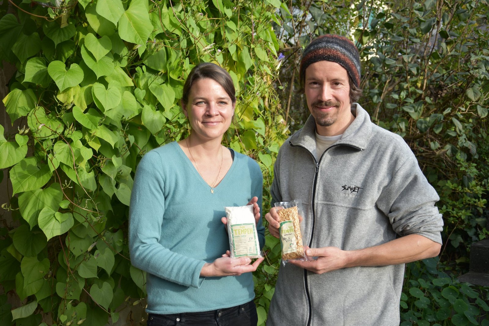 «Mariniert und knusprig angebraten auf Salat, in dünnen Scheiben auf der Pizza, zu Teigwaren oder Reis, in Falafel, Pitabroten oder Risotto, mit Salz und Öl im Ofen gebacken, frittiert und mit Erdnusssauce…» – Stefanie Luttringers Aufzählungen der Zubereitungsarten für Tempeh ist schier endlos. Ihrem Partner Christoph Mullis scheint daneben das Wasser im Mund zusammenzulaufen. Die beiden haben Tempeh auf einer Indonesienreise kennengelernt und da sie zurück in der Schweiz nichts Gleichwertiges fanden, begannen sie ihre eigene Produktion. Daraus wuchs ein kleines Unternehmen mit dem Namen «Tempeh Bagus».