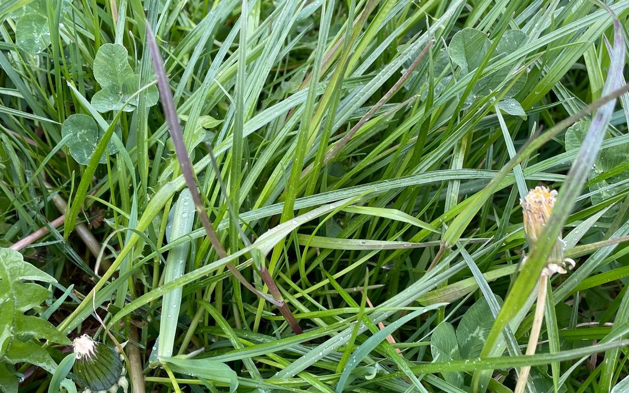 - Hoher Säuberungsschnitt: Bleiben jetzt mächtige Horste mit schlechten Futtergräsern wie Wolliges Honiggras, Weiche Trespe oder Rohrschwingel zurück, möglichst die Samenbildung verringern. Das geht mit einem hohen Säuberungsschnitt (etwa 10 cm) unmittelbar nach dem Abtrieb, falls die betreffenden Gräser die Rispen voll geschoben haben.