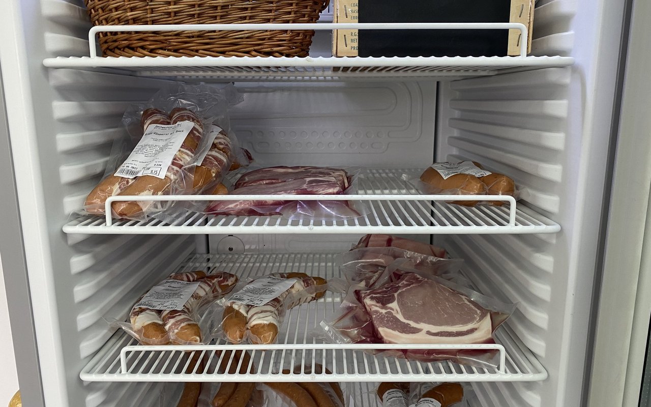 Neben der auffälligen Fellzeichnung und ihrer Feinfühligkeit zeichnet sich die Südtiroler Rinderrasse durch spezielles Fleisch aus. «Es ist butterzart, eiweissreich, cholesterinarm und mit Fett schön durchzogen», so die Beschreibung von Monica Graf. Bevor sie und ihr Mann die ersten Pustertaler Sprinzen gekauft haben, bestand die Thurgauerin darauf, solches Fleisch selbst zuzubereiten. Das Ergebnis überzeugte sie davon, dass es sich bei diesem Produkt um etwas Besonderes handelt. Daher verkaufen Grafs Würste, frisches und tiefgefrorenes Fleisch der männlichen Pustertaler Sprinzen auf dem Bacheschüürli ausschliesslich im Hofladen – auch wenn die Direktvermarktung wegen des grossen Aufwands für sie nicht rentabler sei, als der Verkauf der Grauvieh-Kälber als Natura-Veal. Das Pustertaler-Fleisch gehöre aber nicht in den Detailhandel, wo es nicht als Spezialität wahrgenommen wird.