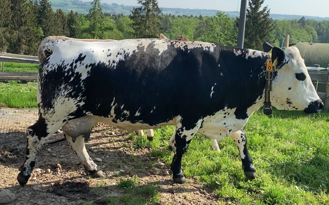 Pustertaler Sprinzen stammen ursprünglich aus dem Südtirol. Ihren Charakter beschreibt Monica Graf zwar als ruhig, sie könnten aber auch dominant oder zickig sein. «Ausserdem sind sie feinfühlig», ergänzt die ehemalige Service-Angestellte und streicht der 5-jährigen Somia über das gefleckte Fell. Einmal habe eine ihrer Kühe plötzlich kaum mehr jemand an sich herangelassen. Graf vermutet, dass etwas vorgefallen war, vielleicht bei einer Behandlung durch den Tierarzt. Jedenfalls sei das zuvor umgängliche Tier danach völlig von der Rolle gewesen. Ähnliche Geschichten habe sie auch von Züchterkollegen gehört. «Das kann man nur mit viel Arbeit wieder geradebiegen», ist sie überzeugt.