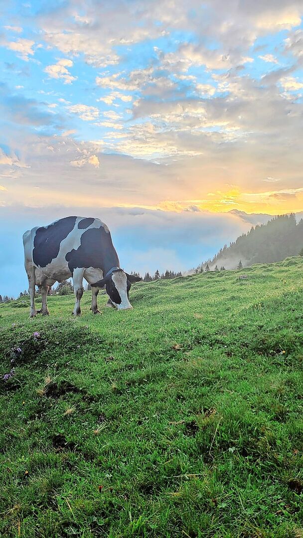 Sofort war klar, dass es sich nicht nur um eine kleine Verletzung handelte. «Auch der Tierarzt war derselben Meinung und ordnete eine Notschlachtung an», erinnert sich Anja Abplanalp. In den zweieinhalb Stunden, in denen man auf den Metzger wartete, fragte sie sich, ob das wirklich das Ende von Maya sein sollte. Auch Maya sah dies offenbar nicht ein und stand schliesslich doch auf, als der Metzger auf der Alp ankam. «Man hat ihr die Schmerzen deutlich angesehen, aber wir brachten es nicht übers Herz, sie zu schlachten», erzählt Abplanalp, die nun eine spezielle Bindung zu Maya aufbaute. Maya war eine zurückhaltende Kuh und liess sich nicht gerne anfassen. «Ich habe sie eine lange Zeit separiert von der Herde gemolken, so hat sie ein Vertrauen zu mir gewonnen», ist sich Abplanalp sicher. [IMG 2]