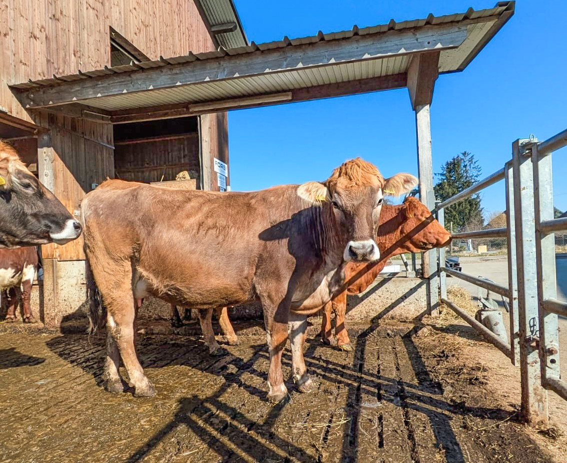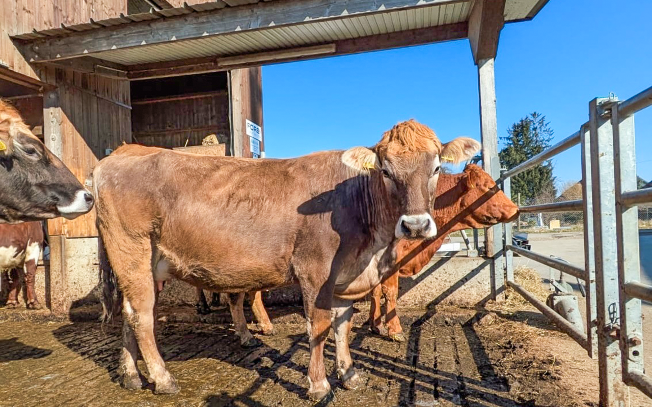Wenn man Lina rufe, sei sie aufmerksam und wisse genau, wer gemeint sei. Mit ihrer liebevollen und zahmen Art sei es auch nicht schwierig, sie in die Abkalbe-Box zu führen. «Ein Kessel Mais und Futterwürfel reichen, um die Braunvieh-Kuh hinter sich her trotten zu lassen», meint Jan Lüscher. Ihr herzlicher Charakter steche auch in der Herde heraus. «Lina wird sicher bis an ihr Lebensende auf unserem Hof bleiben», sagt der Junglandwirt entschlossen.