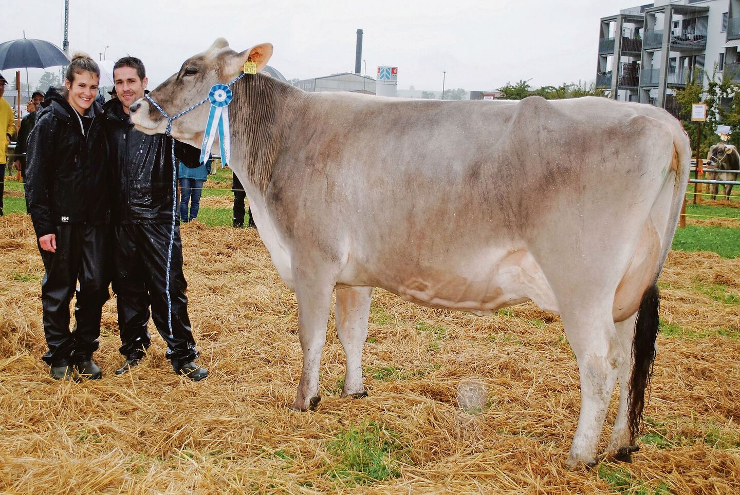 Leider regnete es an der Viehausstellung in Galgenen von der Auf- bis zur Abfuhr in Strömen. Das miese Wetter war wohl mit ein Grund, weshalb von den mehr als 500 angemeldeten Tieren nur deren 392 Stück aufgeführt wurden. Ein anderer war jedoch auch, dass keine Nachmeldungen mehr zugelassen wurden und deshalb den Ausstellern empfohlen wurde, lieber zu viele als zu wenige Tiere anzumelden. Dem Wetter zum Trotz lag die Auffuhr 24 Tiere über dem Vorjahr.