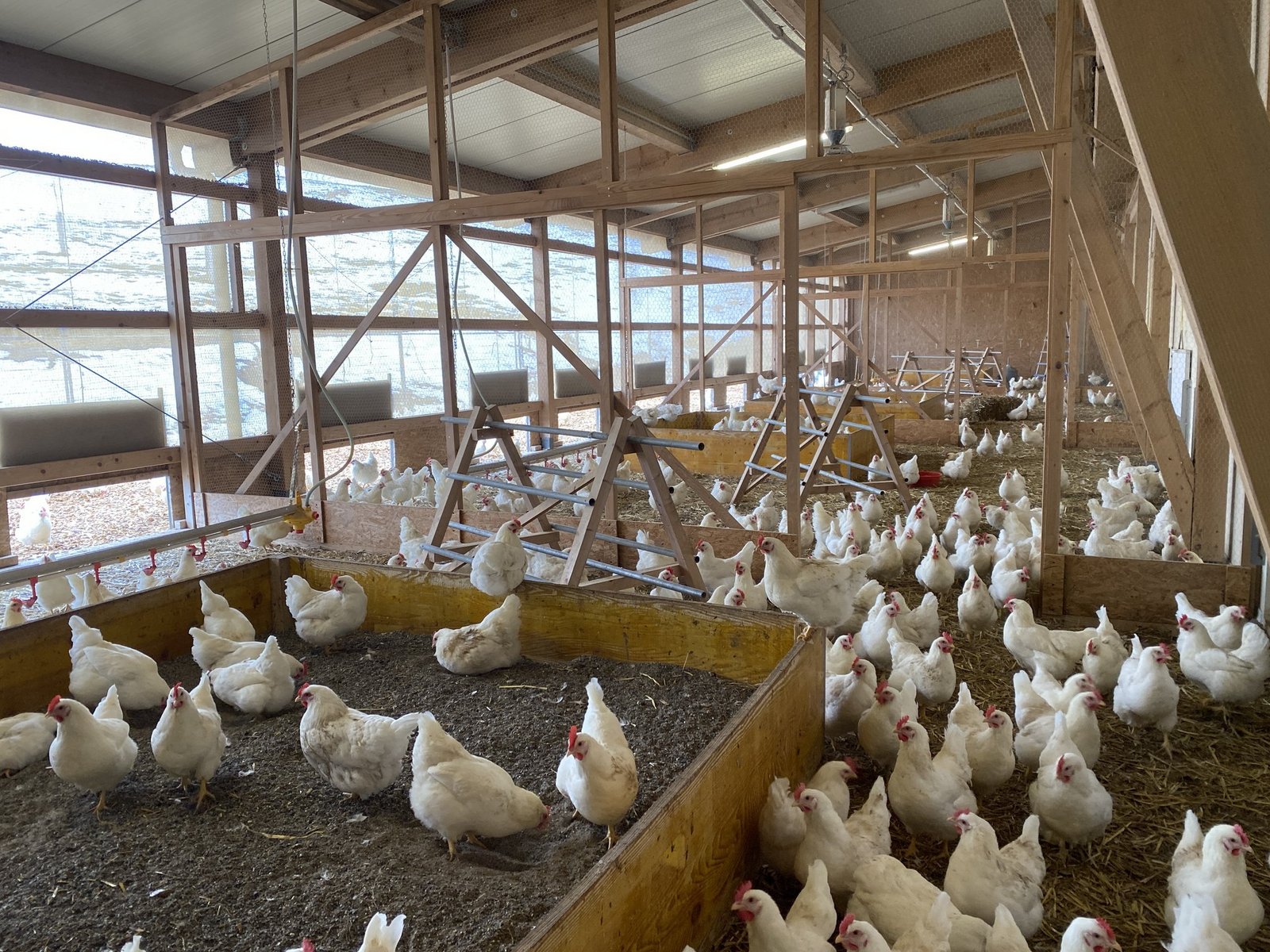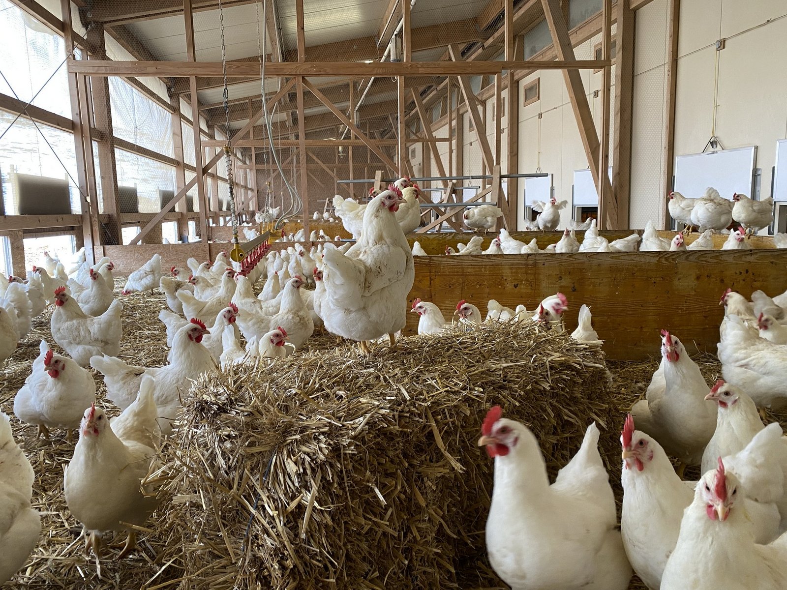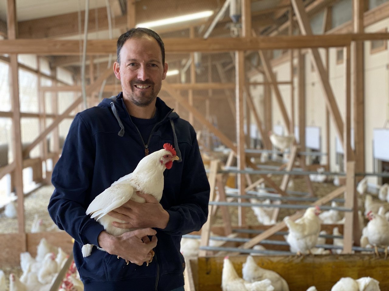Am Ende der Legephase werden die Hennen zu Charcuterie-Produkten verarbeitet. Das ist nicht anders als bei Legehybriden. Im Gegensatz zu einer Zweinutzungsrasse bei Rindern ist die doppelte Nutzung quasi auf die beiden Geschlechter aufgeteilt: Die Hähne gehen auf Mastbetriebe, Hennen liefern Eier. «Schlussendlich hat man vielleicht etwas mehr Arbeit und ›nur‹ ein Ei – erst noch ein kleineres», fasst Adrian Manser zusammen. Dank dem Coop-Projekt stimmt aber die Wirtschaftlichkeit und für Familie Manser ist das Dual-Huhn vor allem auch ein ethisch-moralischer Gewinn. «Wir haben keinen Nachteil daraus und sind dankbar, dass es Kunden gibt, die für dieses Produkt bezahlen», betont er. Die weissen Hennen gackern gedämpft im Hintergrund und schauen zu dem Landwirt auf, als wollten sie ihm beipflichten.
