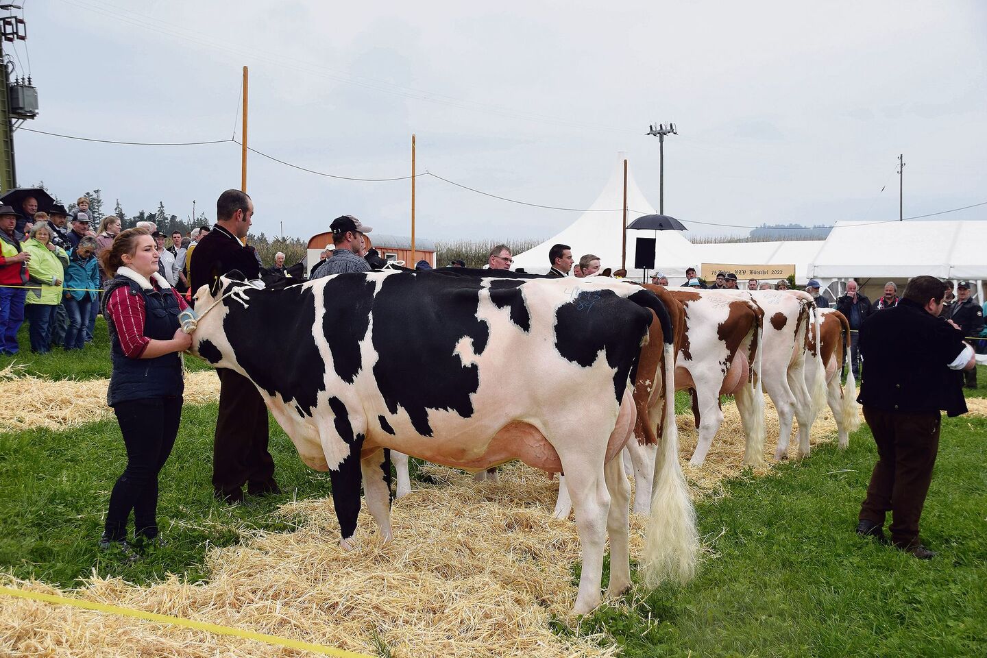 Klein, aber fein: So kann man die Jubiläumsschau 75 Jahre Viehzuchtverein Bütschel zusammenfassen. Gut 100 Kühe wurden am Samstag, 8. Oktober auf dem Viehschauplatz aufgeführt. In fast in jeder Klasse gab es dabei maximal punktierte Kühe zu sehen. Neben Hardy triumphierte auch der Altmeister Pickel mit zwei Klassensiegen und stellte mit Pickel Rebeka (44 44 90) von Fritz Messerli auch die Schöneuterkuh. Für die…