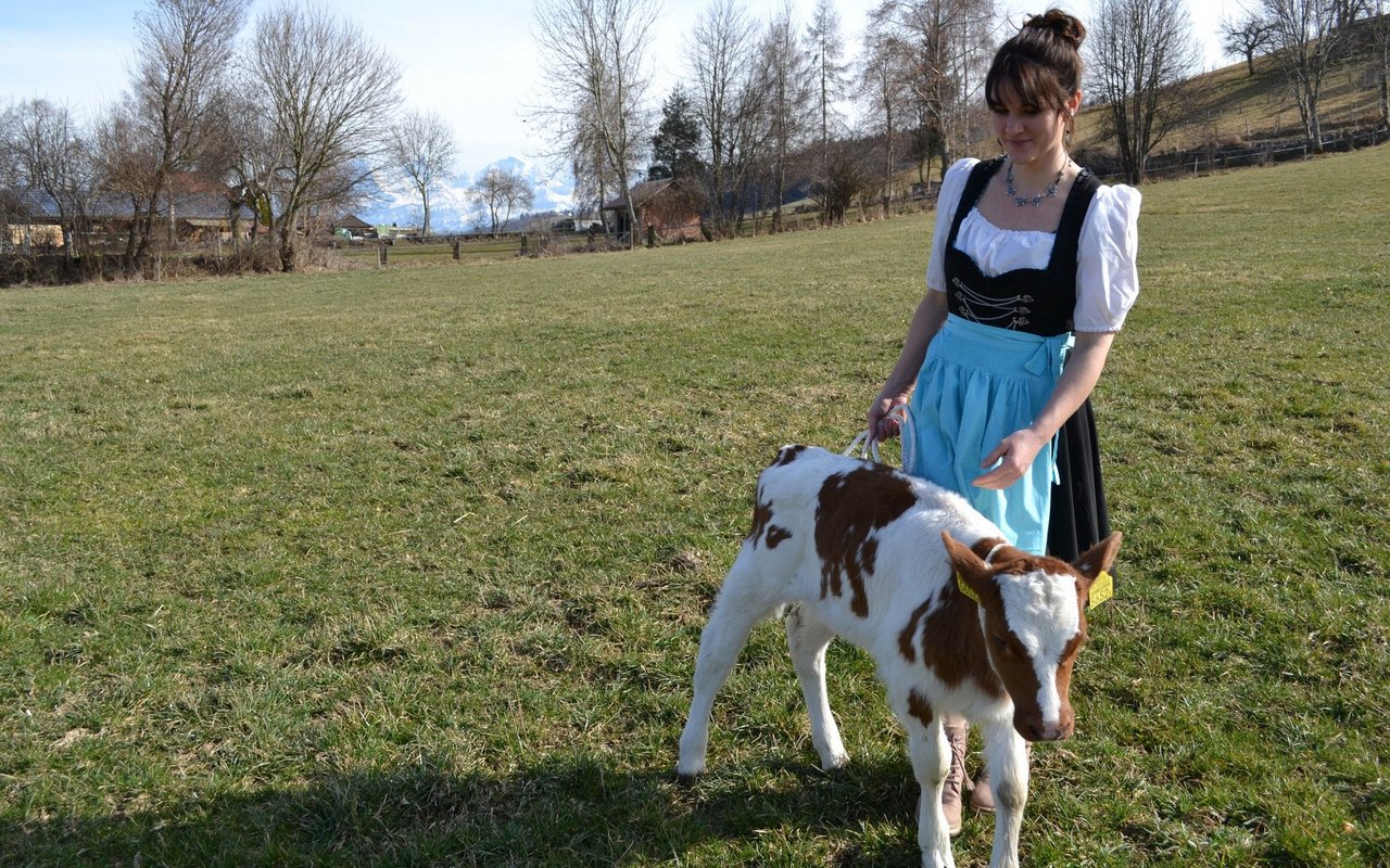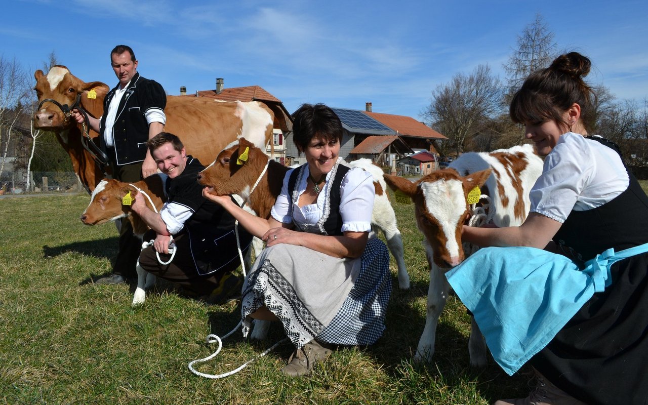 «Unsere Kuh Idylle und die Drillinge hatten wir alle im Whatsapp-Status», erklärt Elisabeth Brönnimann stolz in der Küche der aufgestellten Familie, die in Riggsiberg lebt. An den Radiator gelehnt erzählt die 50-jährige Bäuerin aufgeregt vom Glücksfall im Stall von Brönnimanns. Sie schnürt ihre Tracht zurecht und erzählt fröhlich von der schönen Idylle und den Kuhkälbern weiter, als Tochter Andrea dem Geschehen in der Küche beiwohnt. Die junge Drogistin hatte Idylle als Kuhkalb zu ihrem 20. Geburtstag erhalten. «Der vorherige Besitzer hatte uns wohl das beste und schönste Kuhkalb verkauft, ohne es zu wissen», sagt sie und schmunzelt, ebenfalls in eine Tracht gekleidet.