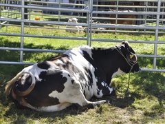 Der Brahaman-Muni liegt auf der Wiese und sieht ziemlich fehl am Platz aus. Seine langen Ohren hängen herab und erinnern an einen Hasen – einem solchen Tier begegnet man in der Schweiz selten. Doch an den Zebu-Tagen des Schweizer Rassenclubs ist exotische Vielfalt Programm.