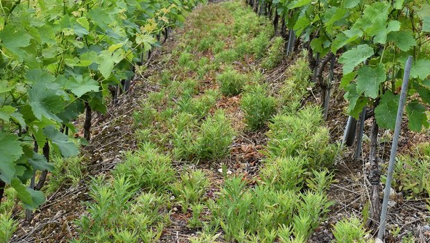 Mechanisch sind die Reben effizient entblättert, aber werden weniger fruchtbar