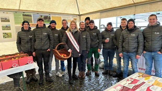 Agrotechniker(innen) begrüssen zusammen mit der Apfelkönigin die Rapperswiler-Bevölkerung