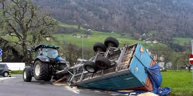 Traktorhänger kippt in Alpnach OW bei Unfall