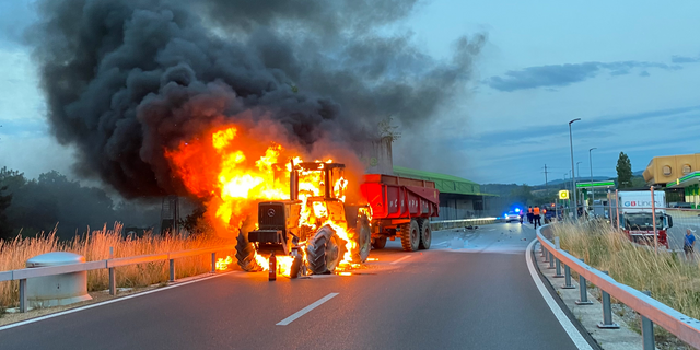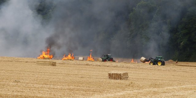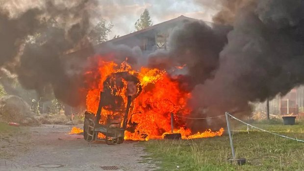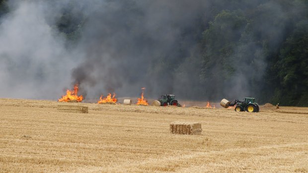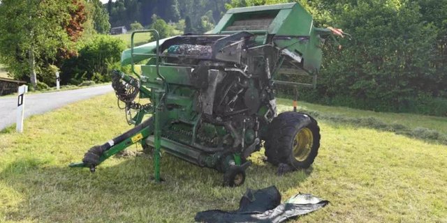 Ballenpresse in Brand – Anwohner eilt mit Feuerlöscher herbei