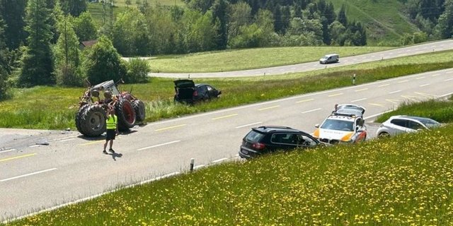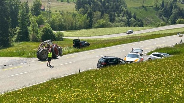 In Trogen im Kanton Appenzell Ausserrhoden sind am Freitag ein Traktor und ein Auto zusammengestossen