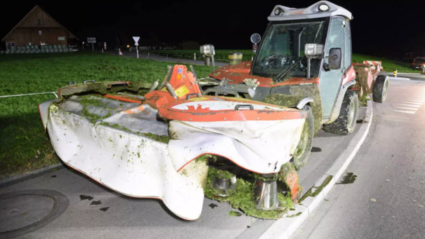 Landwirtschaftsfahrzeug rollt führerlos Hang hinunter