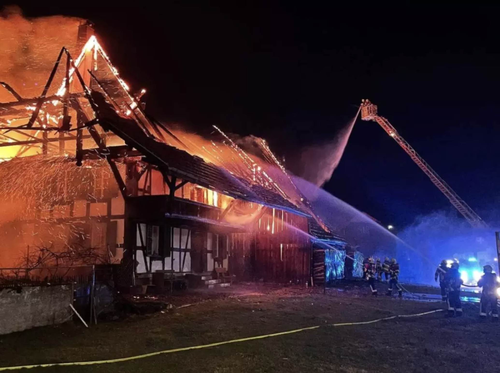 Scheunenbrand tötet eine Kuh und sechs Kälber