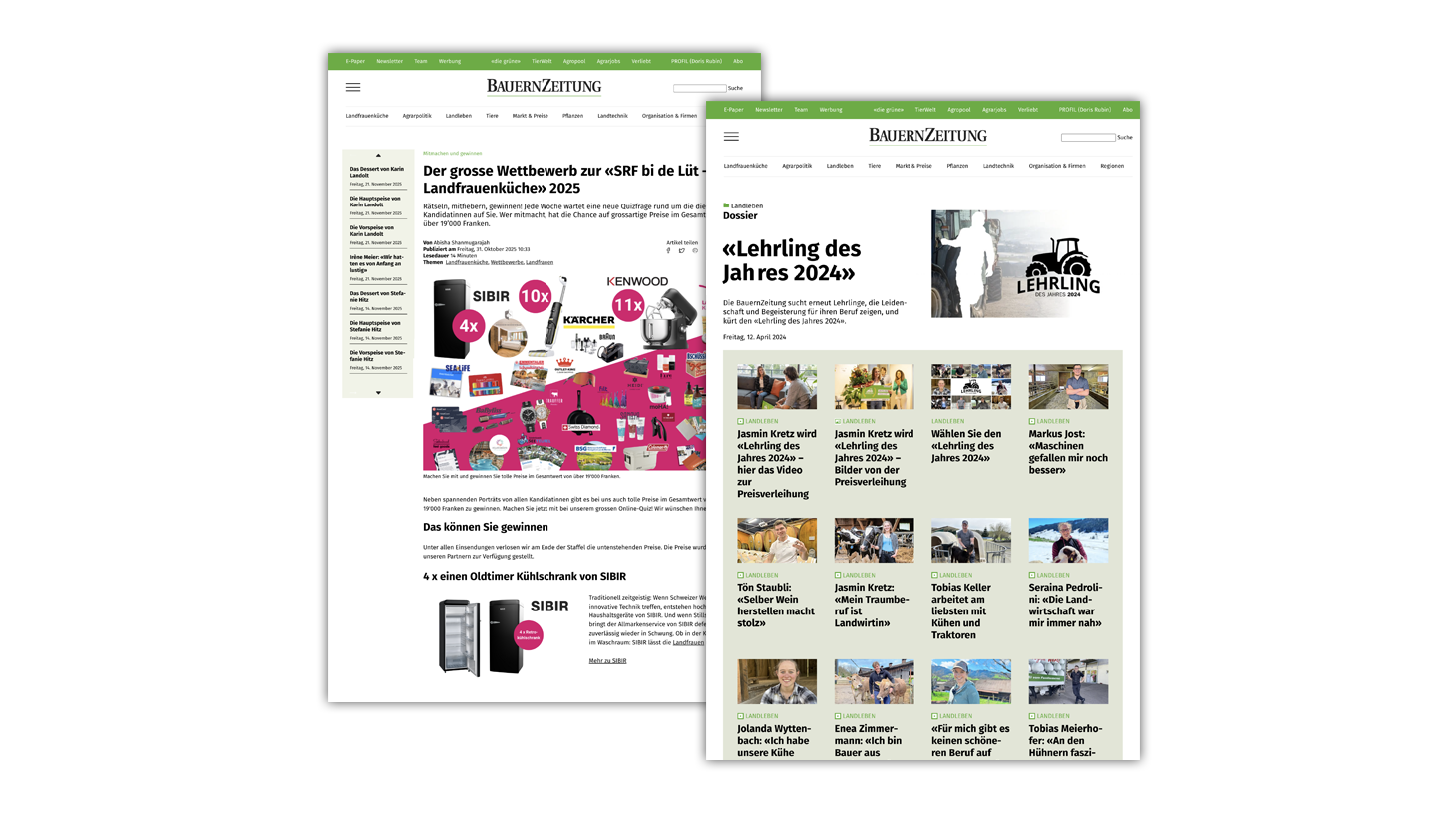 Platzieren Sie Ihre Display-Werbung direkt bei der Zielgruppe auf bauernzeitung.ch und diegruene.ch (Newsnetz). Bei Bedarf unterstützen wir Sie auch gerne bei der Erstellung von Werbemitteln.